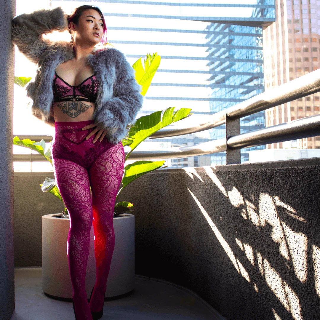 My, my, it’s Time Warp AND Raspberry Pie (are you singing it as well?) – the sensual combo you never knew you needed. The response to these incredible swirling lace fishnets last time was phenomenal so we just had to bring them back in one of your all-time favourite colors. These eye-catching tights will be the talking point of any outfit. The same classic construction as our regular fishies, but levelled up.