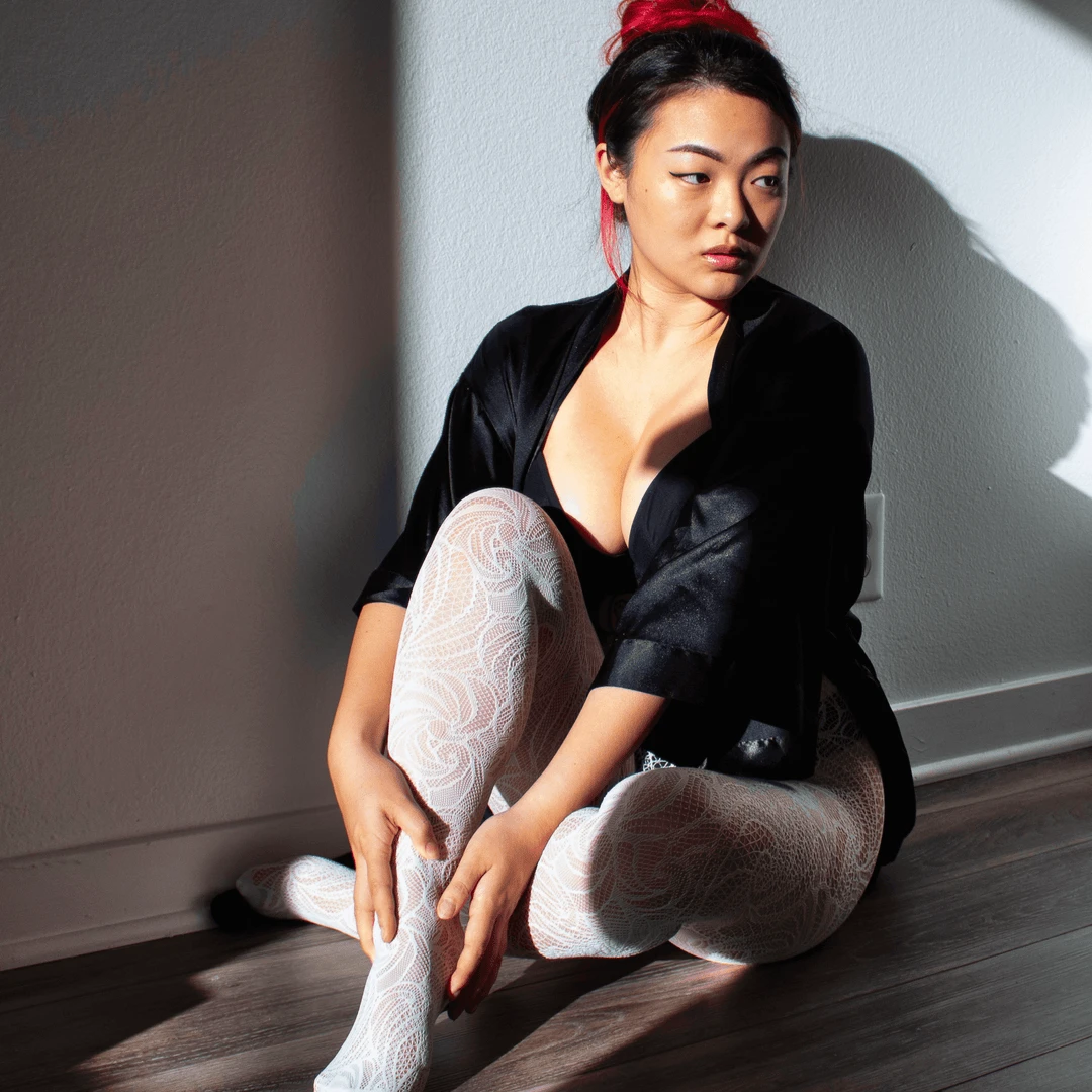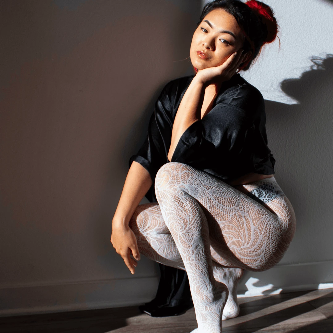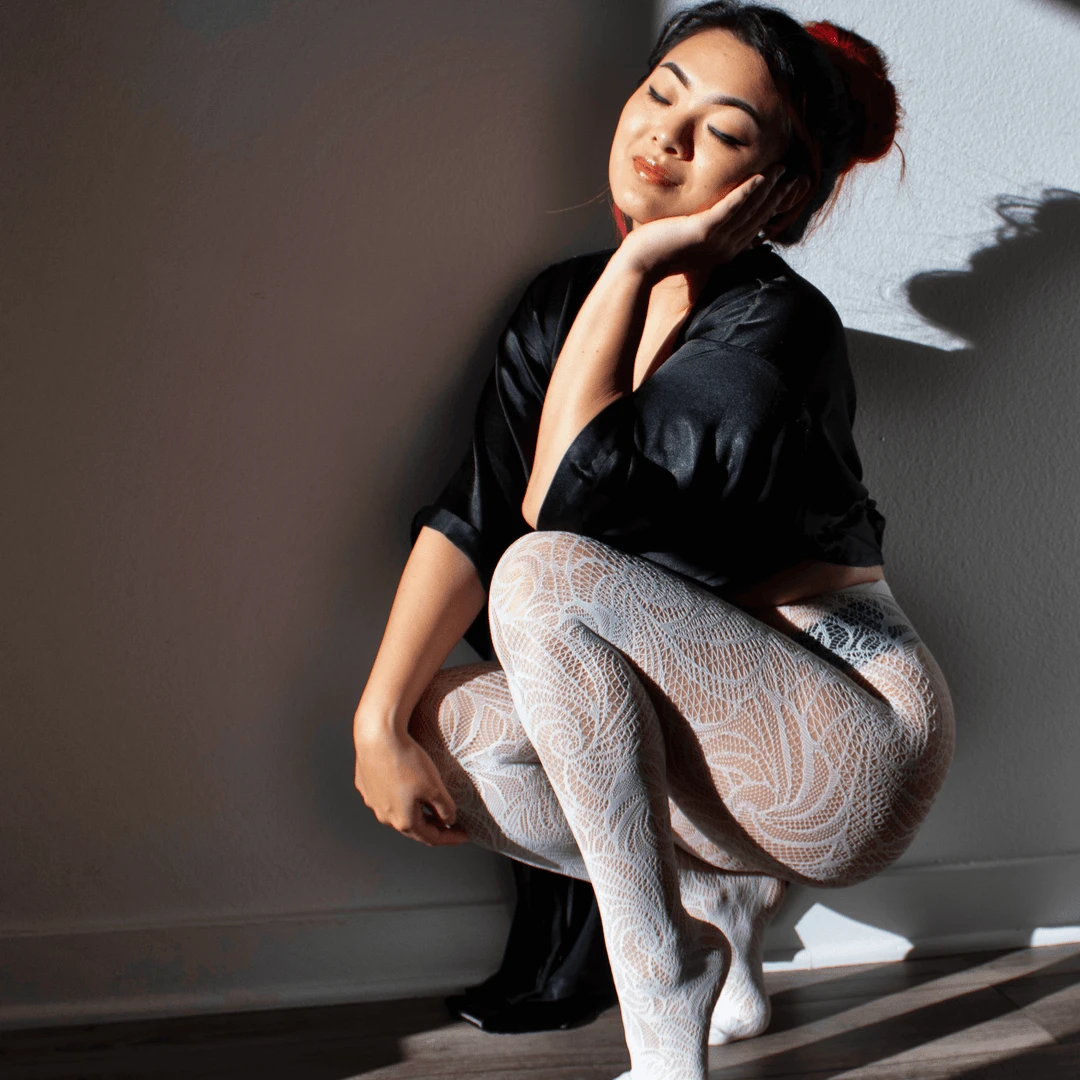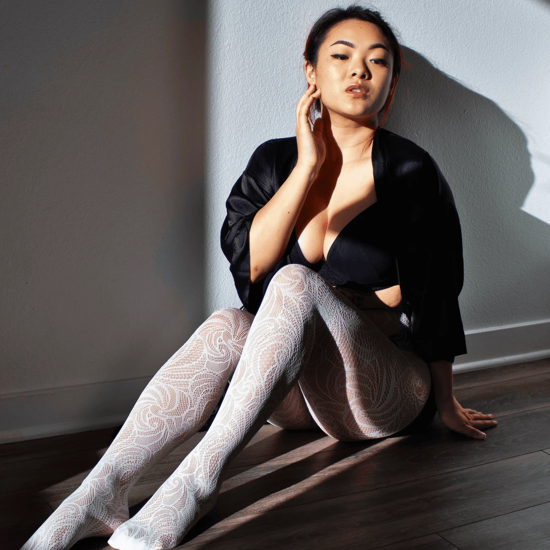 Let’s do the Time Warp AGAIN – but this time in white! You’ll love the fabulous swirling lace fishnet pattern from toe to waist making a statement with any outfit or worn with your favourite lingerie. With the same classic construction as our regular fishies, but with an artistic edge, we dare you to want to wear anything else!