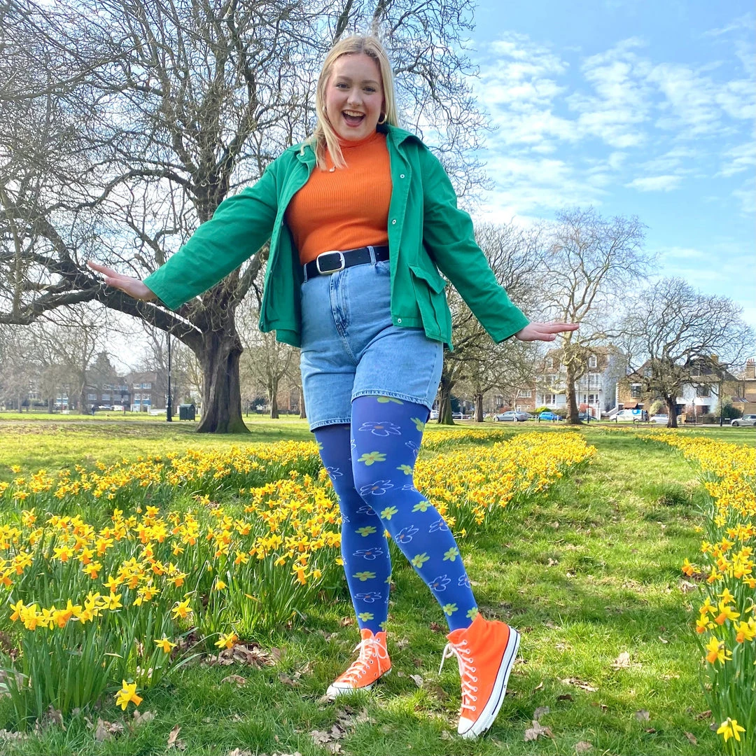 With a True Blue base and knitted with iconic yellow and white Marie Curie daffodils this dreamy floral pattern is giving us sweet sixties vibes and we just KNOW you’ll spread joy wherever you go in these beautiful butter soft tights.Â