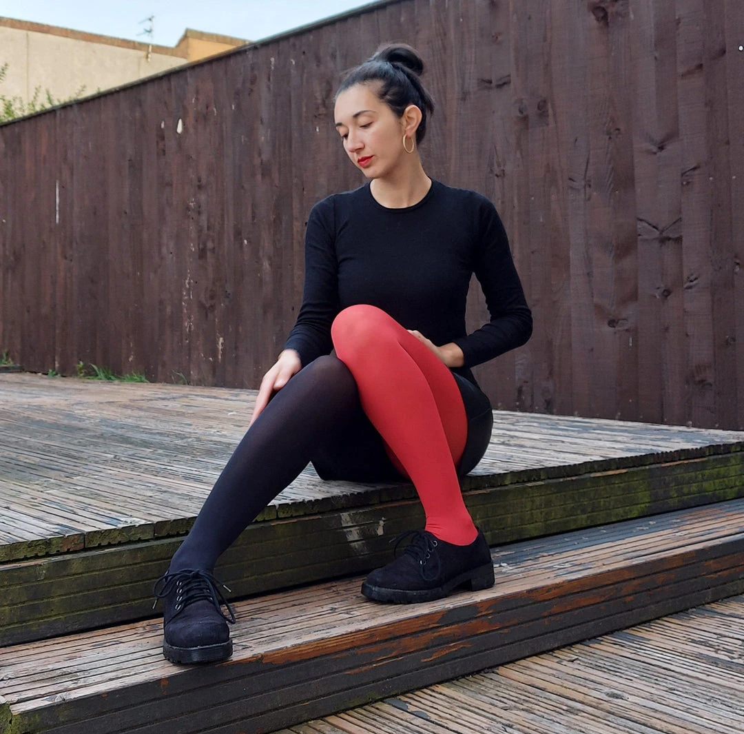What’s better than a pair of Snag tights? Two of your favourite Snags in one! Meet Shack – half Shepherd’s Delight, half Black. One leg in red and one leg in black is such a fun look! Pair these with denim or black for a stand out outfit.