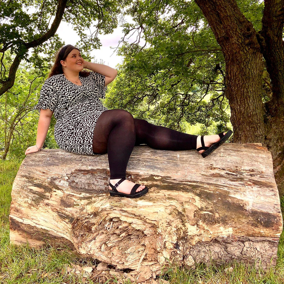 Our footless tights are made in exactly the same way as our classic opaque tights, just without the feet! The same fit, the same stretch, buttery soft, the same coverage but perfect for summer days when you want to feel the grass beneath your feet.