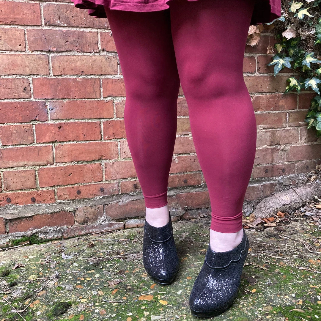 Bold and beautiful – our signature opaque footless tights in burgundy! This deep red pair is utterly soft and matches perfectly with turquoise, golden yellows and all shades of grey.