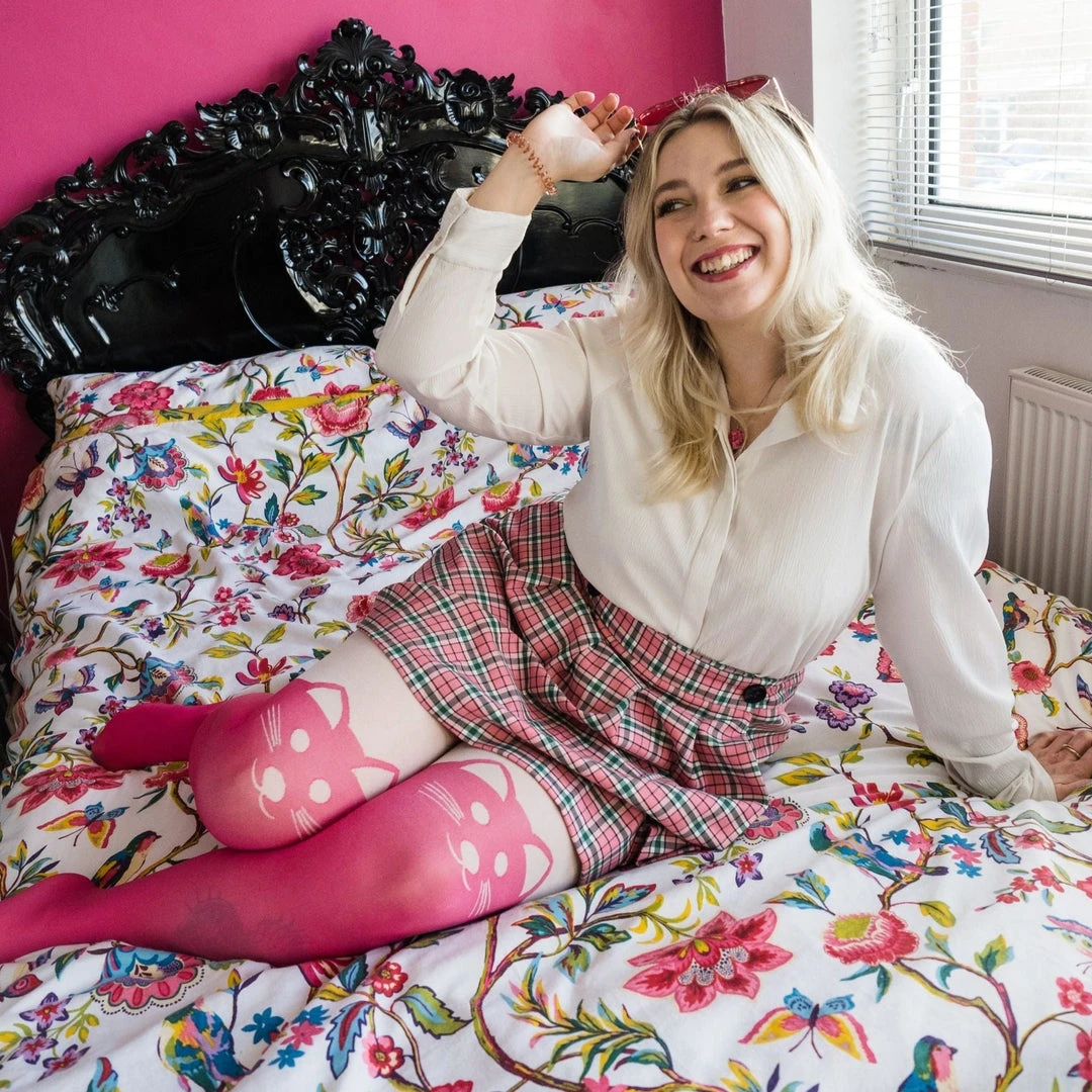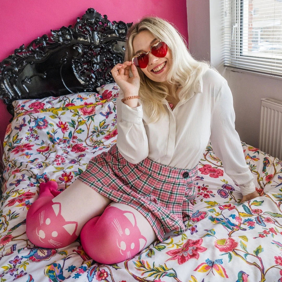 Meeeeeow! A feisty pink cat designed to brighten up your day. A super cute addition to all your mini-skirts or your little secret when you wear these with a longer skirt or dress.Â