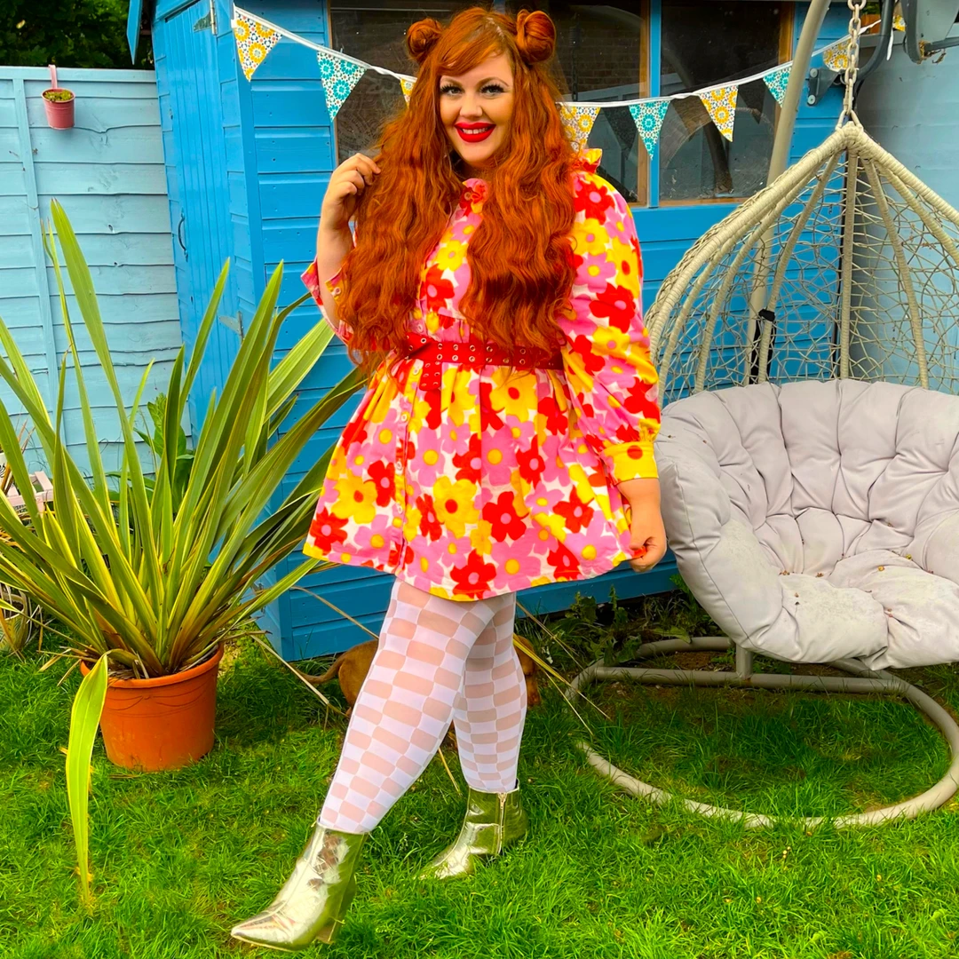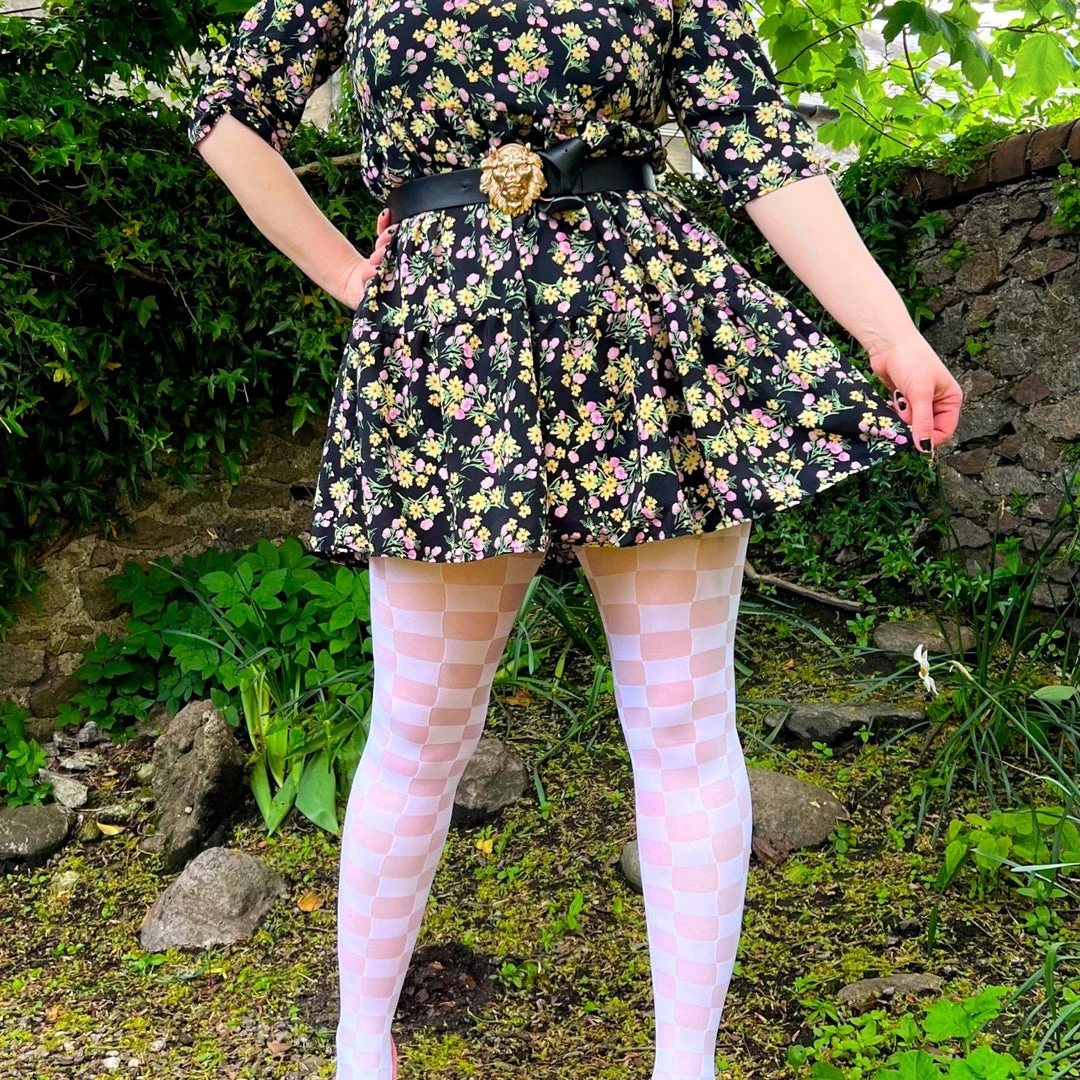 Start your engines for our Racy chequered flag pattern tights in white. These show-stopping mixed denier tights have opaque and sheer panels to add a touch of elegance and 60’s geometric style to any look.