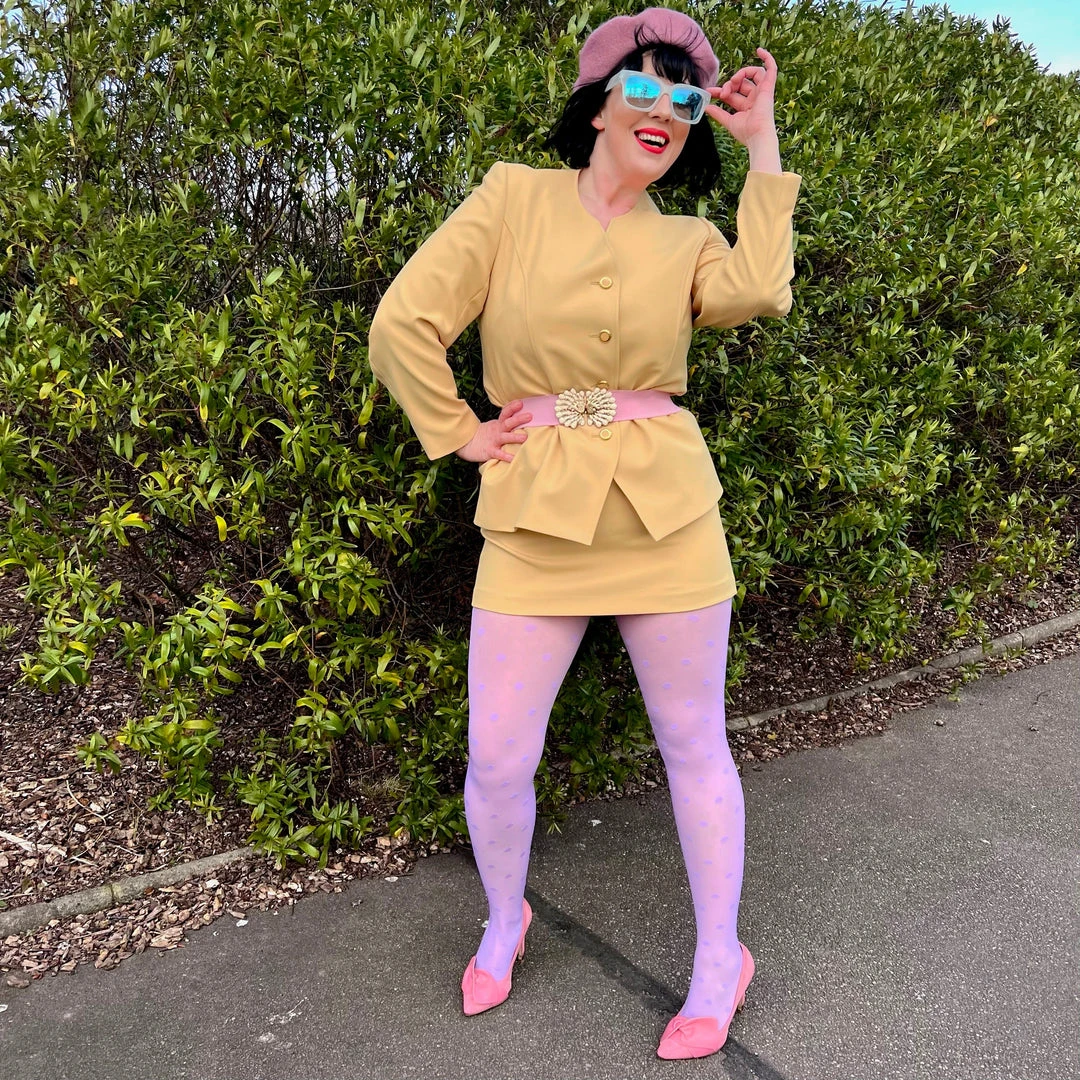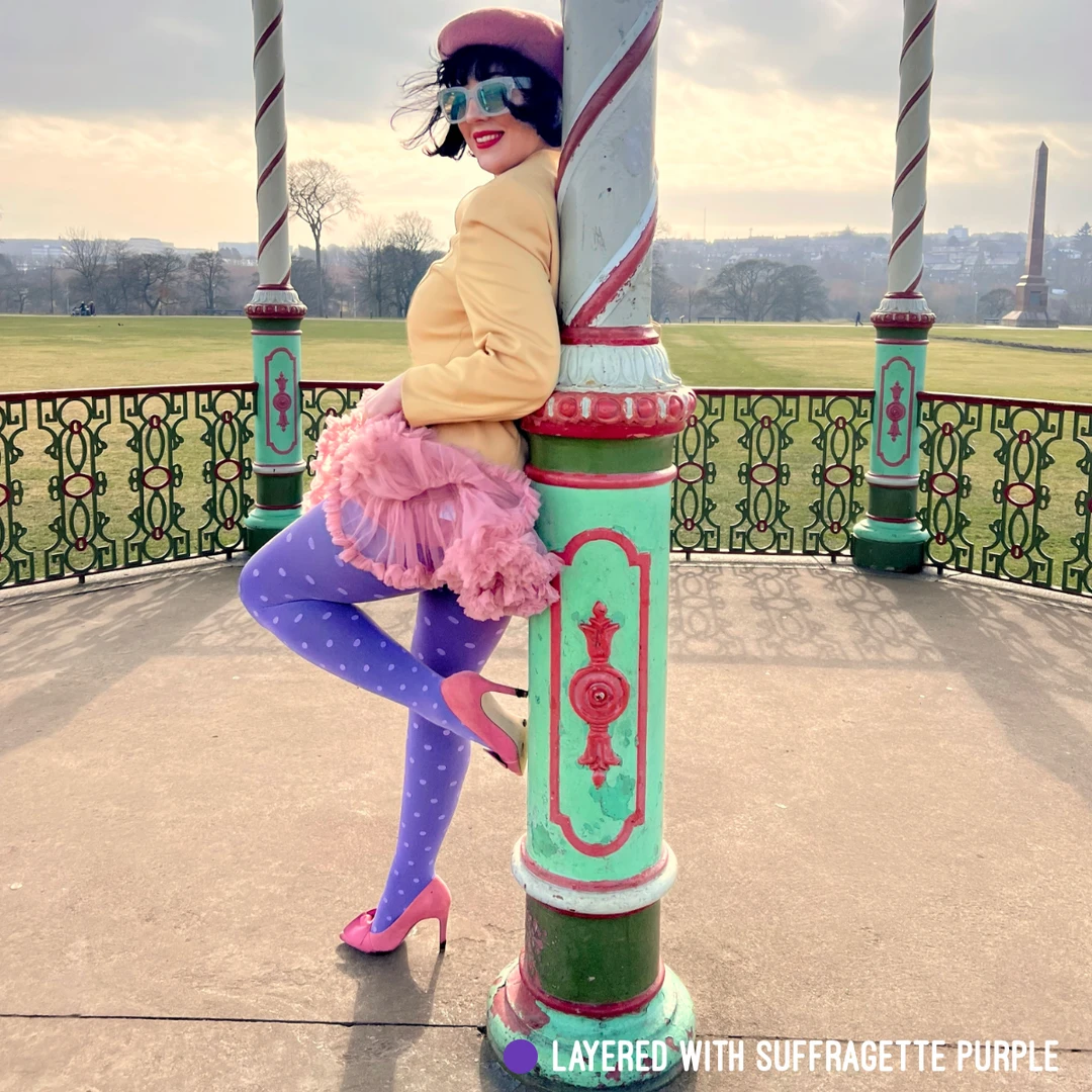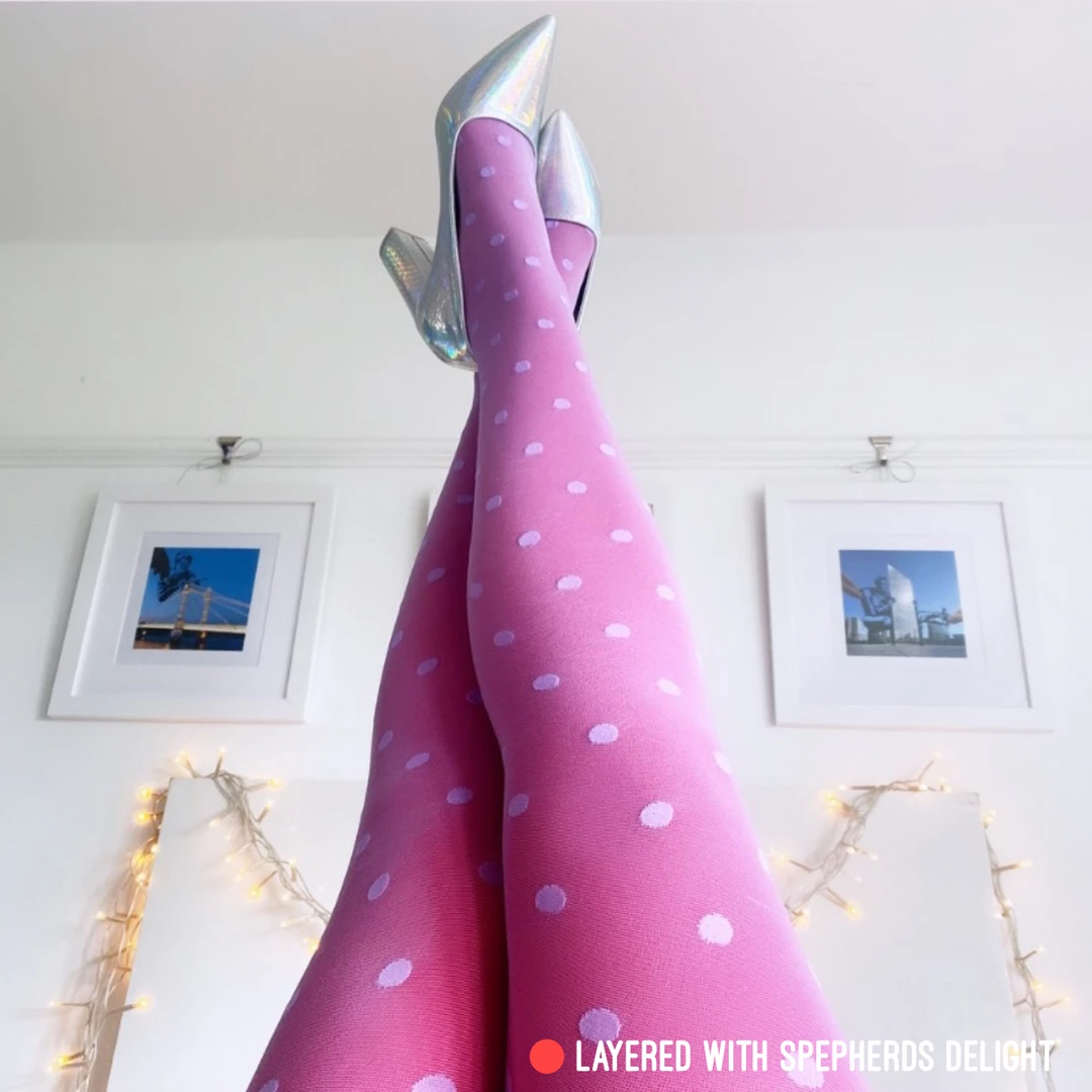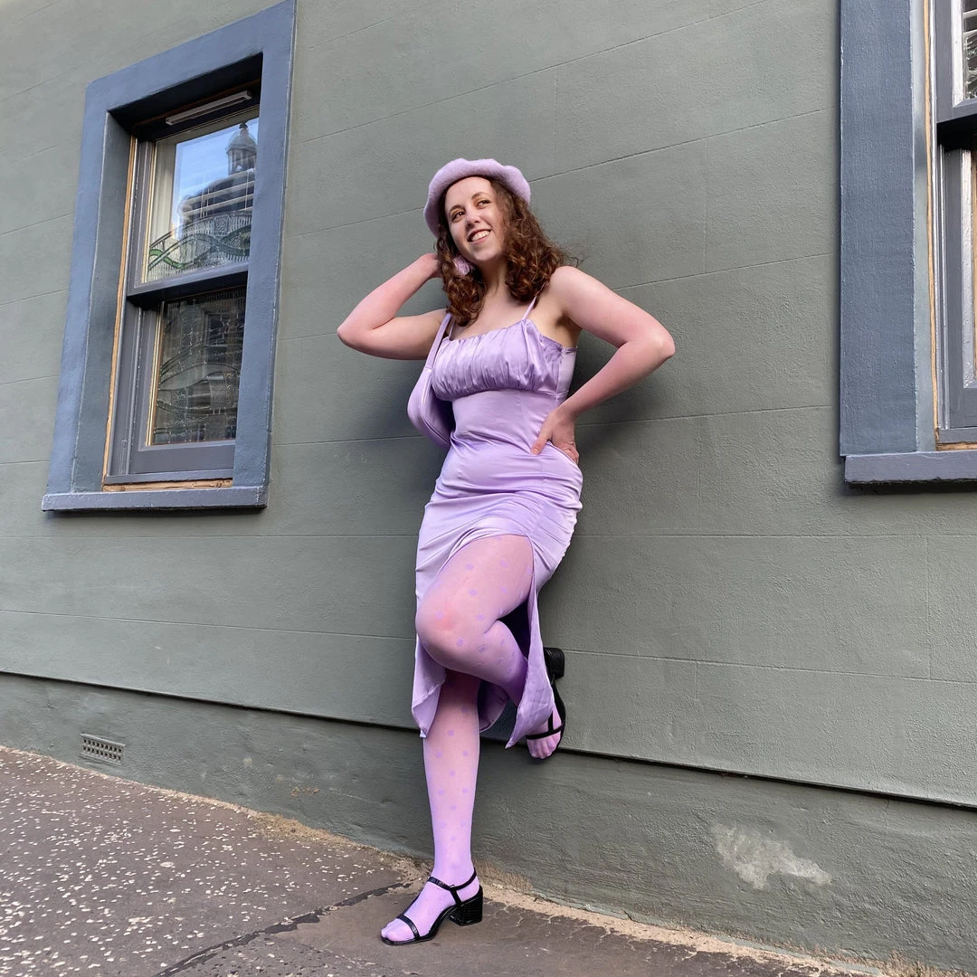 Sheer polka dot tights in your favourite purple. Embrace your inner royal with this delicious bold purple that is pastel-like on the leg. This elegant eye-catching design is the perfect way to give a fully finished look to any outfit, no matter your mood. Perfect on its own, and delicious for layering.