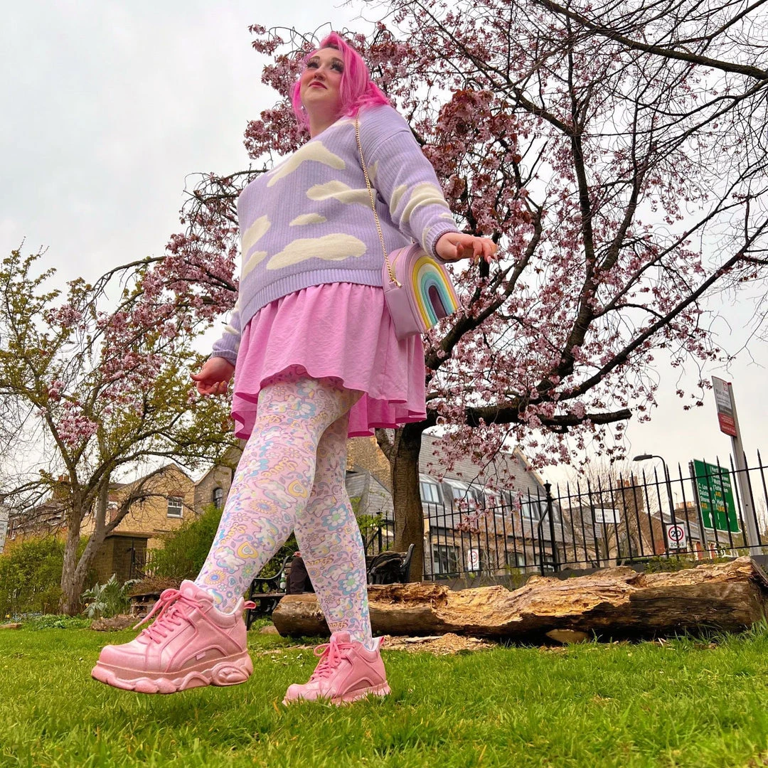 MLP might be 1983 but these tights will transport you to the 1960s Summer of Love. Featuring our favourite unicorn Windy and her best friend Moonstone, you’re going to feel all that colourful magical energy. Perfect for hazy days at festivals and nights spent under the stars, this purple palette will blend effortlessly with your pastel pieces or make a bold statement with any outfit