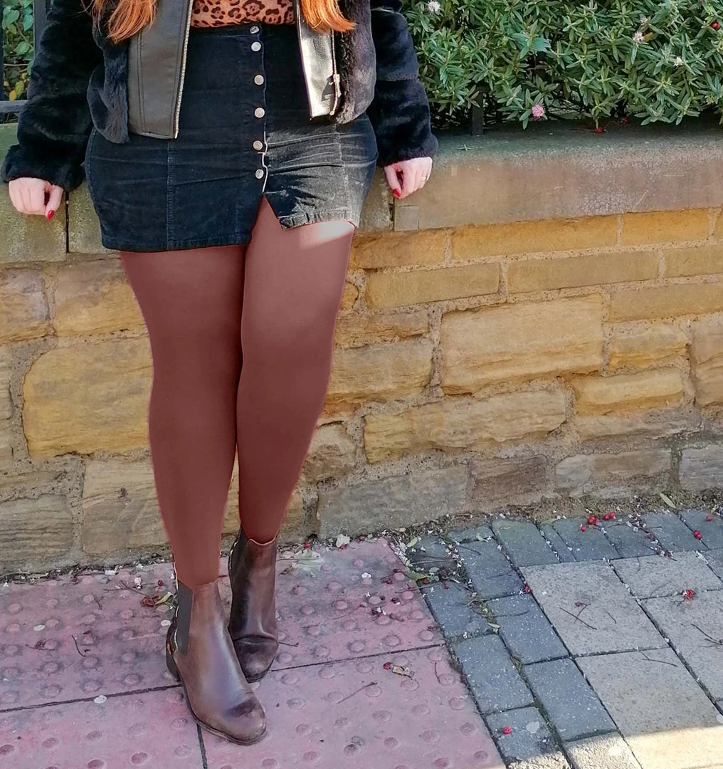 Quench your thirst in our Root Beer tights! These warm & cosy super-opaque tights are a gorgeous brown – perfect for a day to night look. This shade pairs beautifully with reds, mints, yellows & neutrals.