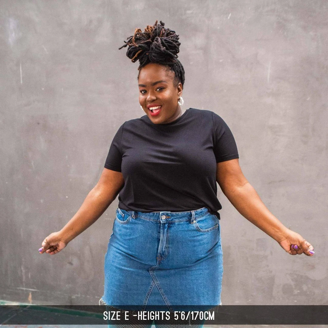 Everyone needs a black tee, now you’ll have one that was made sustainably and designed to truly fit you. No patterns or designs, leaving the wardrobe combinations limitless. This piece will be your go-to for every casual outfit – buttery-soft, stretchy and made to be long-lasting. We’ve listened to your struggles and our t-shirts don’t have a seam in the back and they’re long enough for you to stretch your arms in the air. Finally – a t-shirt that’s made to fit!