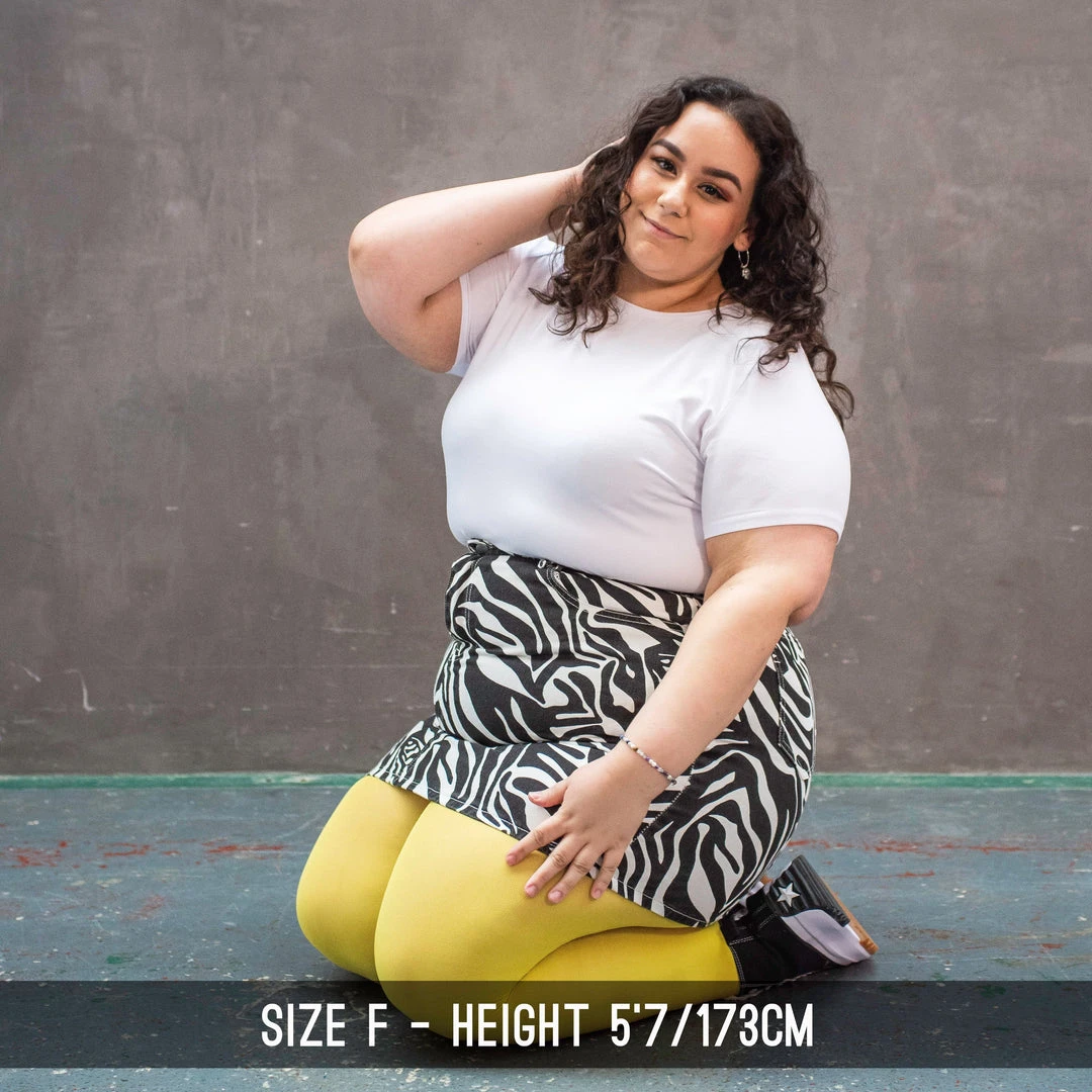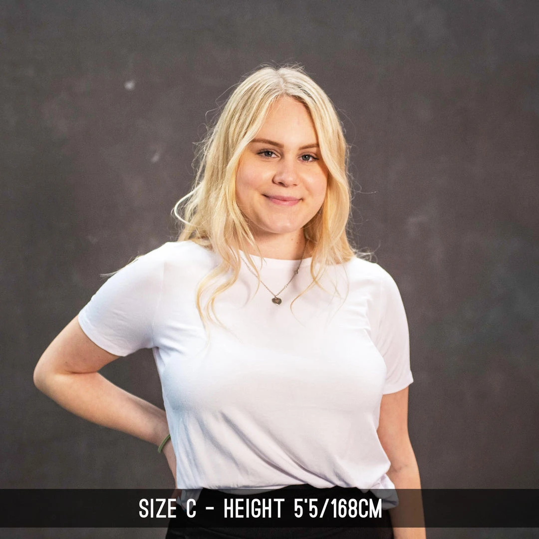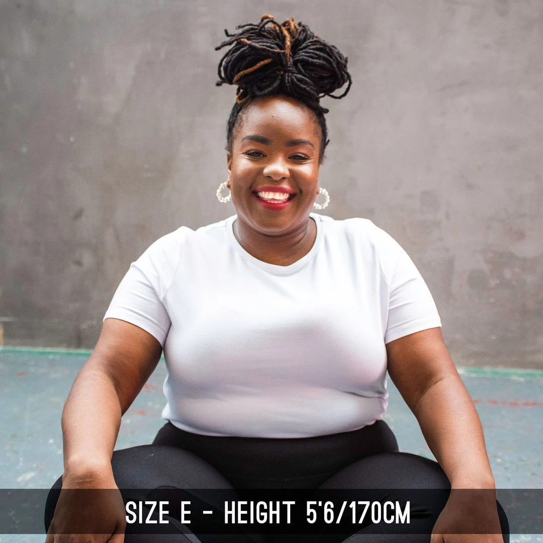 A wardrobe staple – you deserve a comfy, sustainable plain white tee that actually fits! So we made one. Just your basic white tee but better, stretchy, buttery-soft and designed to fit all your curves beautifully. We’ve listened to your struggles and our t-shirts don’t have a seam in the back and they’re long enough for you to stretch your arms in the air. Finally – a t-shirt that’s made to fit!