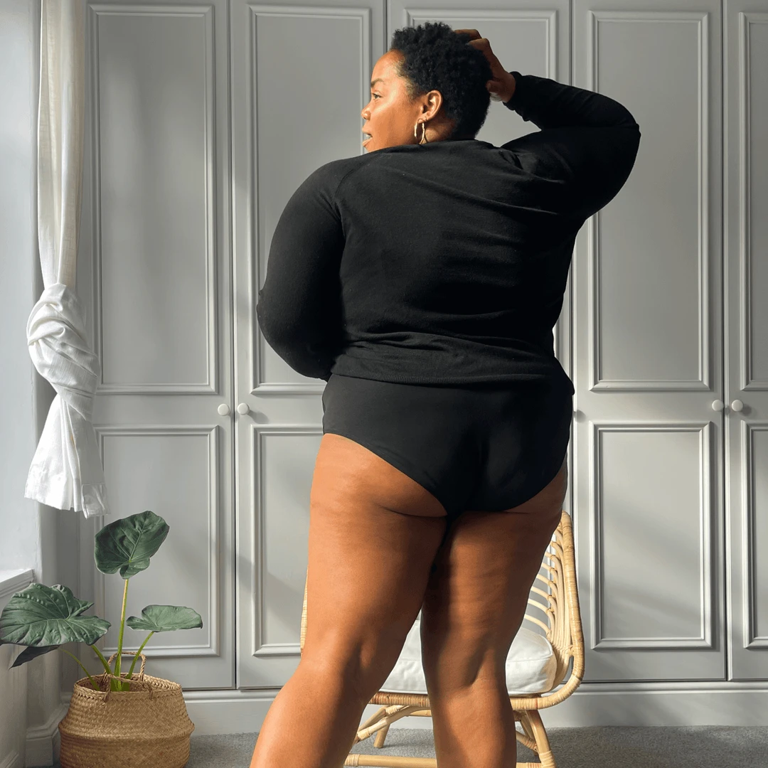 We changed all that! These panties are designed to hold your belly, your whole belly, securely and comfortably. They are high waisted and made from a thick, organic cotton mixed with elastane, making them the perfect combo of stretchy and firm. The waistband is double thickness, with proper internal elastic, so they absolutely will not fall down. The result is a pair of full coverage panties that hold you in securely, stay in place and will last and last. Plus, you can rest assured the cotton is ethical and everyone involved in the supply chain was paid a living wage.
