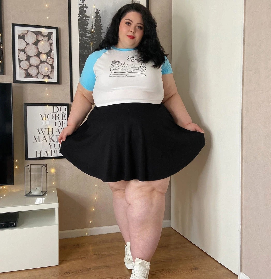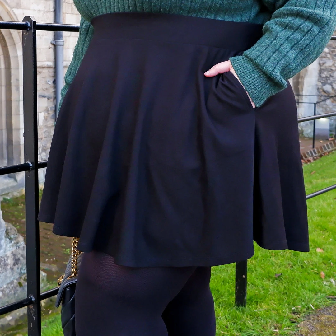 You asked and we delivered. Introducing the Mini flare skirt! Designed to celebrate and show off those fabulous pins, we just KNOW you’ll be in love with this soft, swishy cutie. Whether skating in the park or partying after dark, this stylish little black number will be a wardrobe essential, effortlessly taking you from work to play. Designed to sit higher up on the thigh in true mini style, you’ll have all the leg room you need to make a statement, but don’t worry about flashing your booty, the back of the skirt is slightly longer to ensure full coverage for fabulously fuller bottoms! Oh . . . and yep, it has POCKETS!