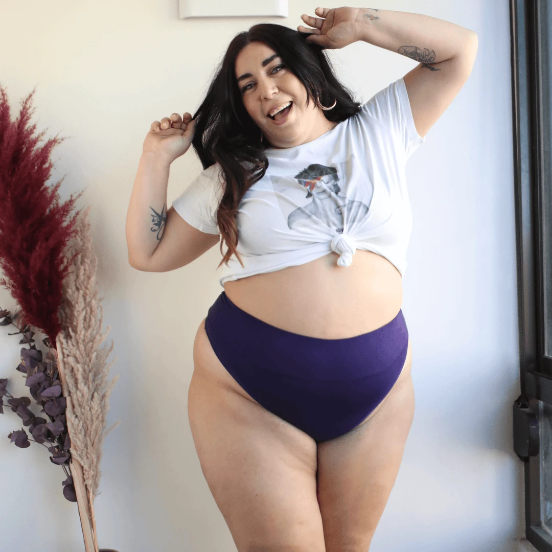We can’t accept lesser thongs, which is why we’ve made a thong that’s high coverage in the front and deliciously skimpy in the back. Designed to keep your belly secure and show off your beautiful bum! They are made from a firm but super stretchy organic cotton, so they feel beautifully snug. They have a double thickness waistband with real elastic in and a high waist, so they emphasise your sexy curves whilst also staying put. Finally, a thong that you can wear all day. Comfy, sexy, and ethically made – the perfect combo.