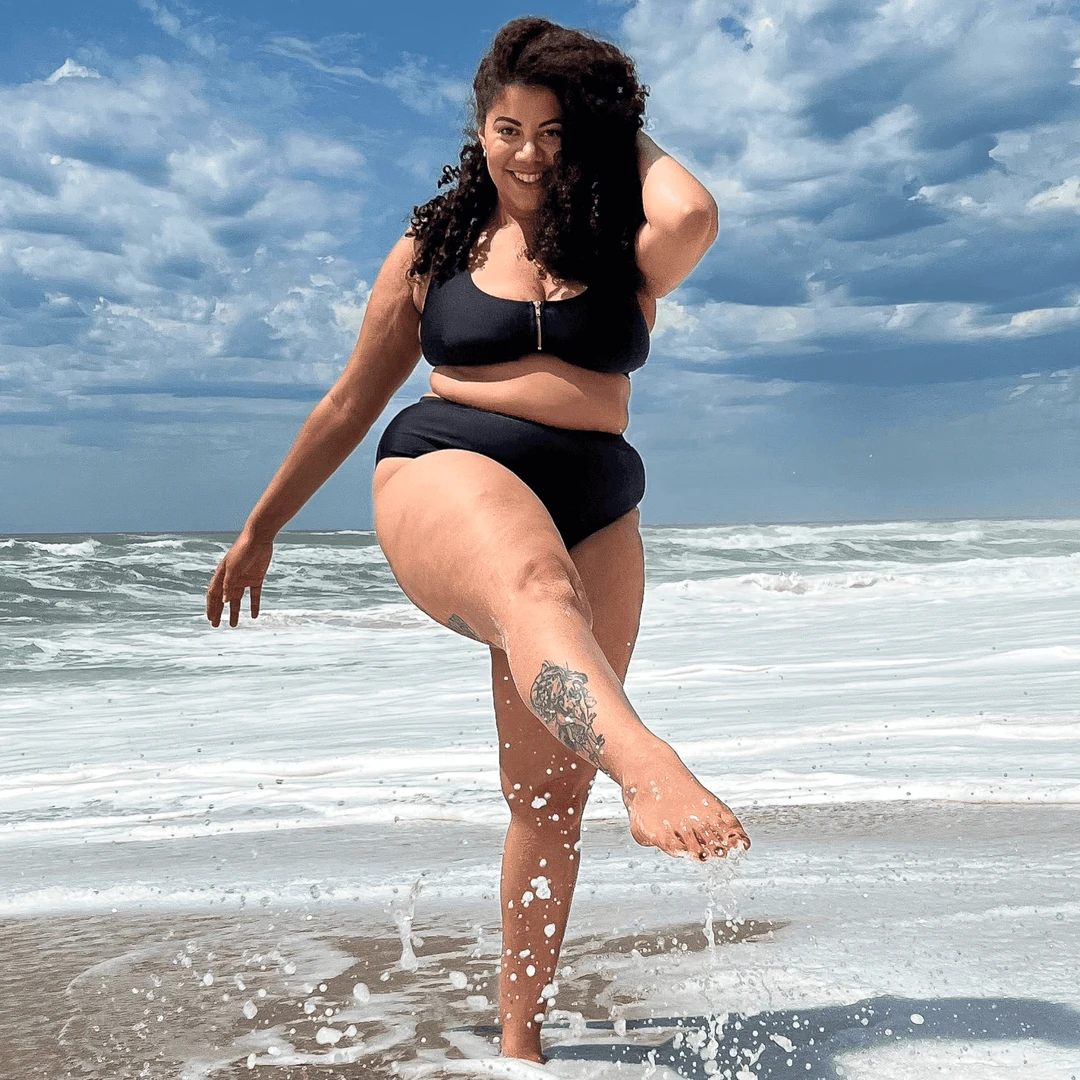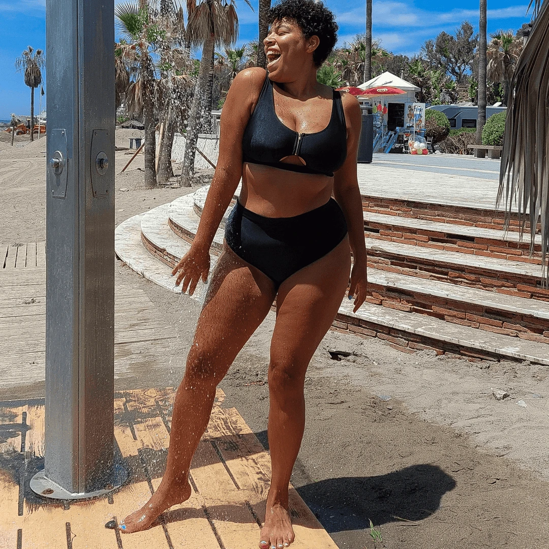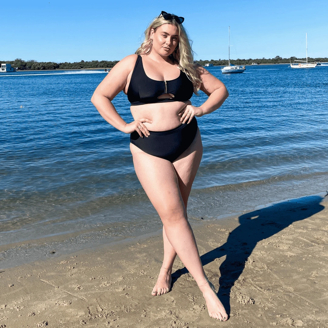 Hasta La Vista bikini bottoms in classic black are high waisted belly huggers for extra coverage and full support. Just like Snaggler favourites Need for Speed, but this time without power mesh to allow for super stretch.