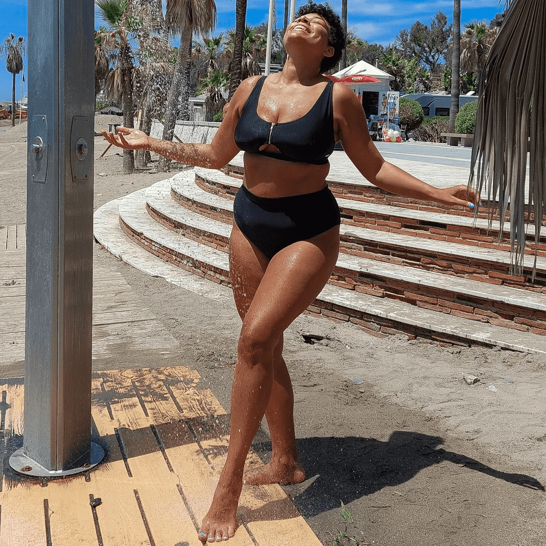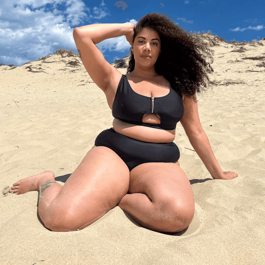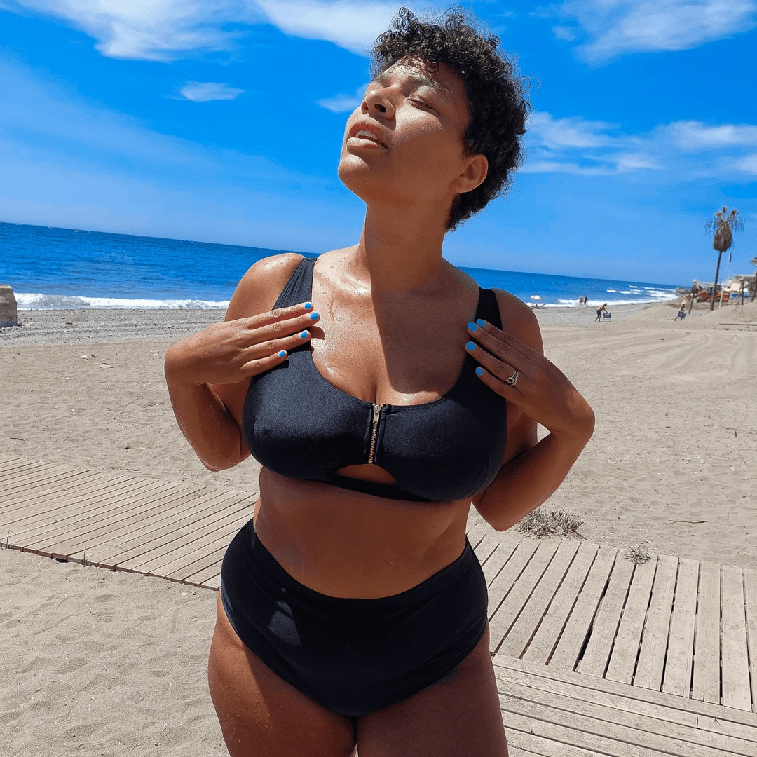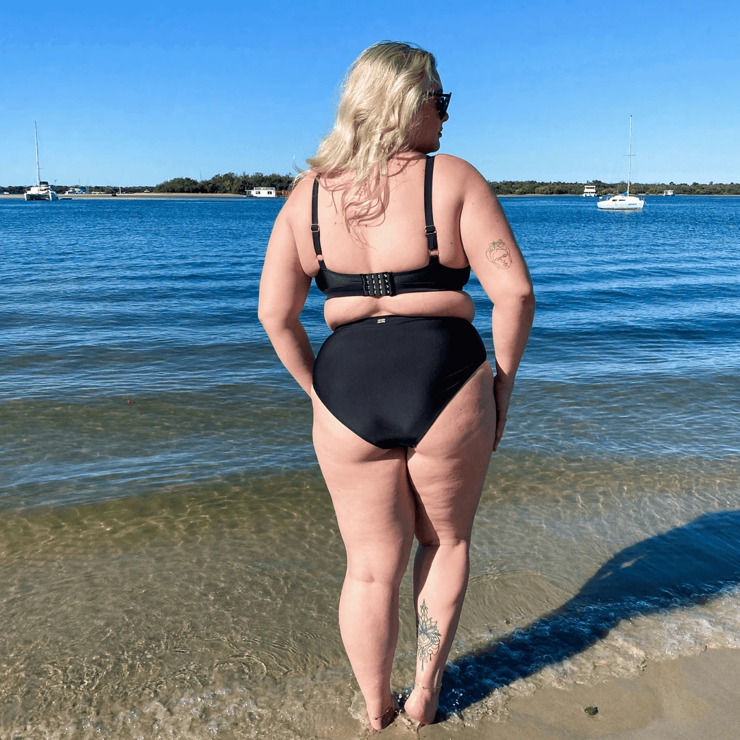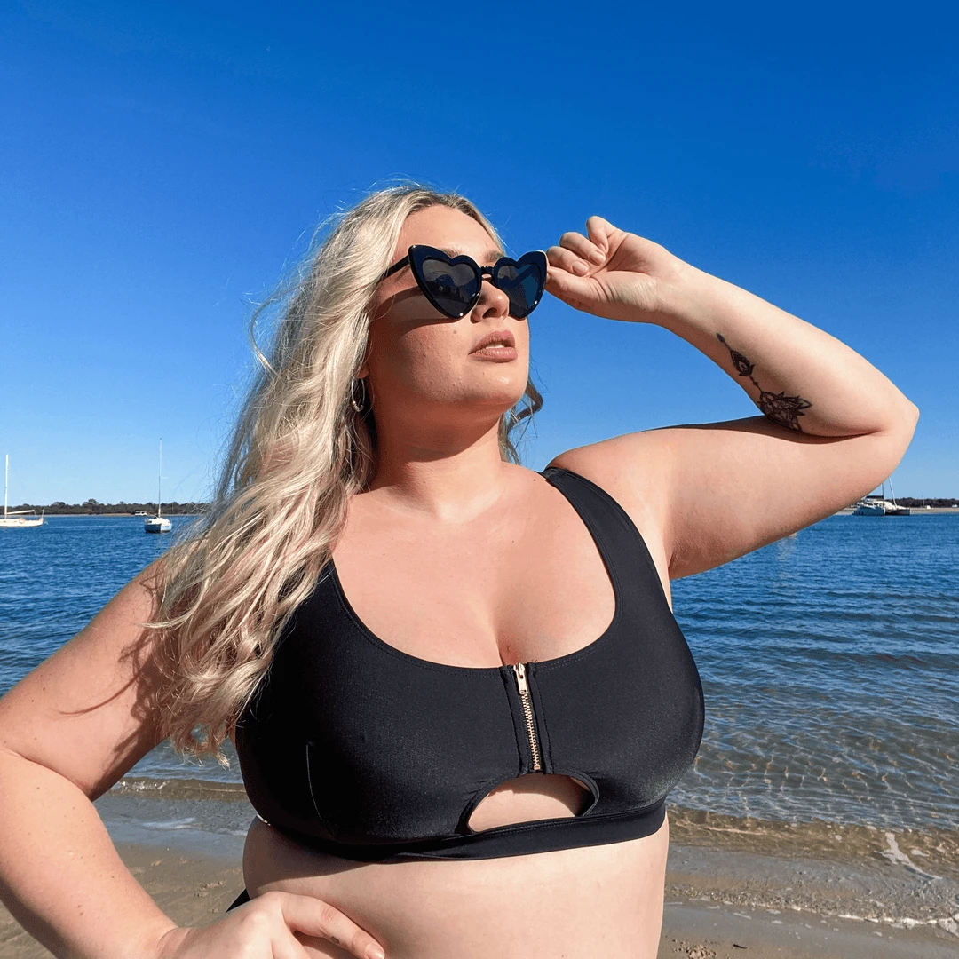 Say ‘Hasta La Vista’ to discomfort in this racer style bikini top in classic black. The same style as our best seller ‘Need for Speed, with power mesh for bust support.