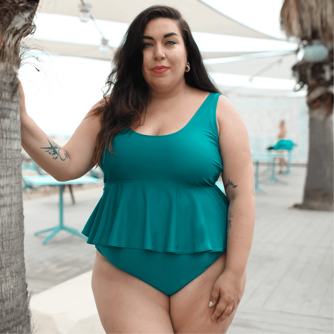 Add a bright pop of colour to your beach and swim attire in Who you Gonna Call? for a look that’s on FIRE! This stylish teal bikini top provides complete comfort with a generous peplum hem, scoop neckline and wide adjustable straps.