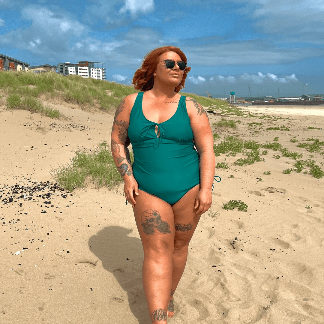 Phone Home in Teal is the aquatic pop of colour your Summer swimwear needs. Perfect for sun, sea, swim and relaxing in. Containing power mesh in the bust area to allow for more comfort and stretch but with integrated bust support and coverage.